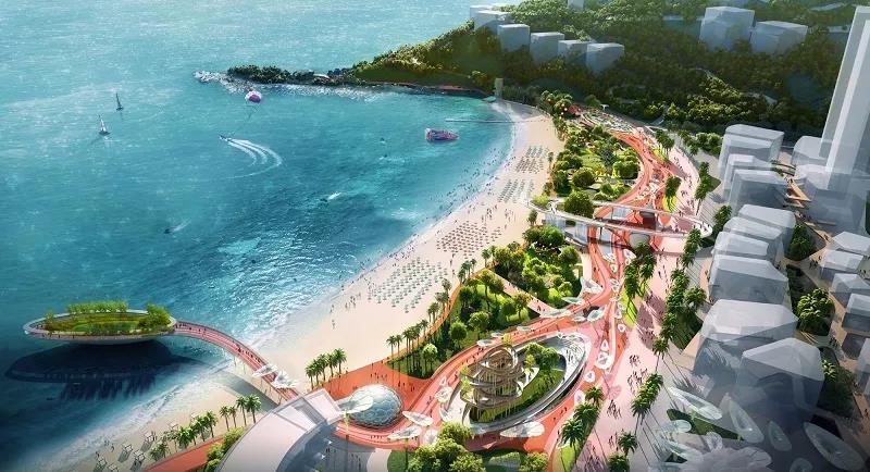 In the scheme, the concept of "boundless new marine paradise" is put forward. Based on the fractal theory and the integrated design of land and sea, and considering the ecological protection, disaster prevention and the feasibility of engineering technology, the sea area utilization mode is innovated to expand the limited space of Xiaomeisha resort.